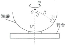 (2)若要求小物块与陶罐保持相对静止,求转台转动角速度的取值范围。