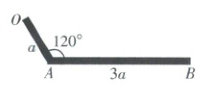 5. [湖北武汉问津教育联合体2024高一下联考]某型号汽车的后雨刮器摆臂可视为绕$O$点旋转的折杆$OAB$,如图所示,$OA$长度为$a$,$AB$长度为$3a$,$\angle OAB = 120^{\circ}$,$AB$部分装有胶条,雨刮器工作时,胶条紧贴后窗平面,可视为匀速率转动。关于雨刮器的工作过程,下列说法正确的是(