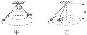 5. [湖南永州多校2025联考](多选)如图甲所示为具有相同摆角$\theta$、不同摆长的两圆锥摆$A$、$B$,如图乙所示为具有相同摆高$h$、不同摆长的两圆锥摆$C$、$D$,下列说法正确的是(