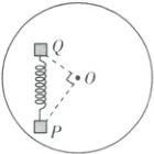 3. [重庆育才中学2025高一下月考](多选)如图所示(俯视图),用一根原长为$L_0$、劲度系数为$k$的轻弹簧将质量均为$m$的两个可视为质点的小物块$P$、$Q$连接在一起,放置在能绕$O$点在水平面内转动的圆盘上。物块$P$、$Q$和$O$点构成直角三角形,已知$QO$的距离为$L_0$、弹簧长度为$2L_0$,$\angle POQ = 90°$。现使圆盘以不同的角速度$\omega$做匀速圆周运动,小物块$P$、$Q$与圆盘始终相对静止,弹簧长度始终不变。下列说法正确的是(