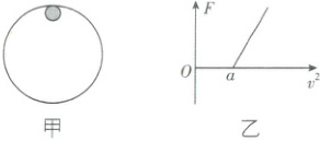 4. [河北保定定州中学2025高一下期末](多选)如图甲所示,圆形轨道固定在竖直平面内,内轨道光滑,有一可视为质点的小球沿光滑内轨道做圆周运动,在轨道最高点装有速率传感器和压力传感器(图中未画出),可测出小球经过最高点时的速率v和压力大小F.用同一小球以不同速率多次重复实验,得到F与$v^2$的关系图像如图乙所示.已知图像与横轴交点的坐标为$(a,0)$,重力加速度为g,不计空气阻力,下列说法正确的是 (