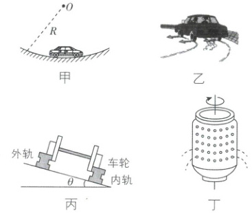 D.丁中洗衣机脱水桶脱水的原因是水滴受到的离心力大于它受到的向心力