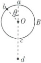 3. 物理学家设计了如图所示的装置。半径为$R$的圆筒$B$可绕$O$轴以角速度$\omega$匀速转动,$aOcd$在同一直线上,银原子以一定速率从$d$点沿虚线方向射出,穿过筒上狭缝$c$打在圆筒内壁$b$点,$\angle aOb = \theta$,$ab$弧长为$s$,其间圆筒转过的角度小于$90^{\circ}$。下列判断正确的是(