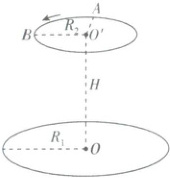 5. [山东 2025·10](多选)如图所示,在无人机的某次定点投放性能测试中,目标区域是水平地面上以$O$点为圆心、半径$R_{1}=5$m 的圆形区域,$OO'$垂直地面,无人机在离地面高度$H=20$m 的空中绕$O'$点、平行地面做半径$R_{2}=3$m 的匀速圆周运动,$A$、$B$为圆周上的两点,$\angle AO'B=90^{\circ}$。若物品相对无人机无初速度地释放,为保证落点在目标区域内,无人机做圆周运动的最大角速度应为$\omega_{max}$。当无人机以$\omega_{max}$沿圆周运动经过$A$点时,相对无人机无初速度地释放物品。不计空气对物品运动的影响,物品可视为质点且落地后即静止,重力加速度大小$g=10$m/s²。下列说法正确的是(