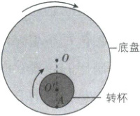 4. B 【解析】底盘以$O$为轴匀速转动,底盘上除$O$点外所有点均做同轴转动,转杯上除$O'$点外所有点不仅相对$O$点同轴转动,还相对$O'$点同轴转动,所以$O'$点做匀速圆周运动,$A$点做的不是匀速圆周运动,A错误,B正确;设该时刻$A$点在底盘上的竖直投影点所对应的转盘上的点为$A'$,$A'$点转动的半径大于$O'$点的转动半径,由$v = \omega r$可知,$A'$点的速度大于$O'$点的速度,又由于该时刻$A$点绕$O'$点与底盘做同方向转动,则$A$点的速度大于$A'$点的速度,则此时$A$点的速度一定大于$O'$点的速度,C、D错误.
