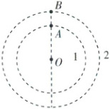 5. [吉林松原 2025 高一下期中]2024 年 10 月 30 日 11 时,神舟十九号载人飞船成功对接于空间站天和核心舱的前向端口. 设两飞船对接前分别在同一平面内的两圆轨道 1、2 上绕 O 点沿逆时针方向做匀速圆周运动,如图所示. 图中 A、B 分别是轨道 1、2 上的两点,且 O、A、B 三点在同一直线上,则(