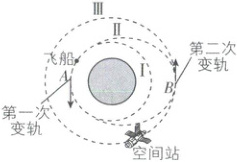 (1)低轨道飞船与高轨道空间站对接时,让飞船合理地加速,使飞船沿圆轨道做离心运动,当行至椭圆轨道的远点处时再次加速,追上高轨道空间站完成对接,如图甲所示。