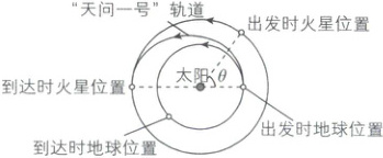 (2)“天问一号”从地球出发进入地火转移轨道时,日地连线与日火连线的夹角 $ \theta $。
