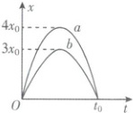 (1)双星系统中的两颗恒星$a$、$b$绕$O$点做圆周运动,两颗恒星的角速度相同;由图像可知,该双星系统的周期为$2t_0$,$a$的轨道半径为$4x_0$,$b$的轨道半径为$3x_0$,可得$r_a:r_b = 4:3$,由线速度与角速度的关系$v = \omega r$可知,$a$、$b$的线速度之比为$v_a:v_b = 4:3$.