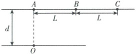 6. [云南师范大学附中 2025 高一下期中]如图所示,一船在静水中的速度大小恒定,水流速度大小恒定且方向沿着河岸向右,小船的速度小于水流速度,河岸宽度恒定为 $ d $. 小船从 $ O $ 点开始渡河,图中 $ OA $ 垂直于河岸,$ AB = BC = L $. 已知当小船划行方向垂直于河岸时,小船正好航行到 $ B $ 点,运动时间为 $ t_{B} $,且 $ d < L $. 则(