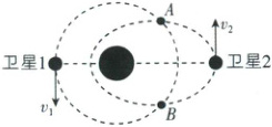 )A.两卫星在图示位置的速度$v_{1} > v_{2}$