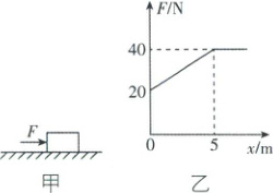 9. [吉林长春外国语学校2025高一下期中]如图甲所示,在水平地面上放置一木块,其质量m=10 kg,木块在水平推力F作用下运动,推力F的大小随位移x变化的图像如图乙所示。已知木块与地面间的动摩擦因数μ=0.2,重力加速度g取10 m/s²,最大静摩擦力等于滑动摩擦力,下列说法正确的是(