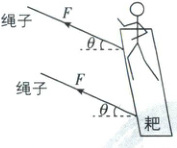 8.BD【解析】由题可知,人与耙沿水平方向匀速运动,故人受力平衡,水平方向不受摩擦力的作用,故A错误;根据力的分解及平衡条件可得$f = 2F \cos 25.5^{\circ} = 2 × 250 × 0.90N = 450N$,故B正确;耙做匀速直线运动,所受合力为零,因此耙所受合力对耙不做功,故C错误;根据功的计算公式可得两条绳子拉力对耙所做的总功$W = 2Fx \cos 25.5^{\circ} = 2 × 250 × 12 × 0.90J = 5400J$,故D正确。