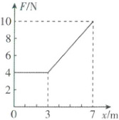 4.BC 【解析】0~3m物体做匀速直线运动,可知阻力大小为$f=F_1=4N$,在$x=5m$处,由图像可知拉力大小为$F_2=7N$,关键点:根据题意和图像判断出阻力的大小是解题的关键