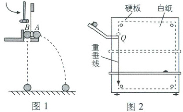 (1) 用图1装置进行探究,在小球A、B处于同一高度时,用小锤轻击弹性金属片,使A球水平飞出,同时释放B球。多次重复实验,观察到的现象:小球A、B总是同时落地,可判断出A球竖直方向做