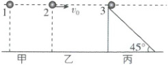 12. A 【解析】小球落地瞬间重力的功率为$P = mgv_{y}$,对小球1有$P_{1} = mgv_{y1} = mg \sqrt{2gh}$,对小球2有$P_{2} = mgv_{y2} = mg \sqrt{2gh}$,对小球3有$P_{3} = mgv_{y3} = mg \sqrt{2gh} \sin 45^{\circ} = mg \sqrt{gh}$,所以落地瞬间重力的功率$P_{1} = P_{2} > P_{3}$,A正确;小球1做自由落体运动,落地时速度大小为$v_{1} = \sqrt{2gh}$,小球2做平抛运动,落地时速度大小为$v_{2} = \sqrt{2gh + v_{0}^{2}}$,小球3沿斜面下落,落地时速度大小$v_{3} = \sqrt{2gh}$,则落地瞬间速度大小$v_{1} = v_{3} < v_{2}$,B错误;重力做功与路径无关,只与初末位置的高度差有关,故该过程重力做功$W_{1} = W_{2} = W_{3}$,C错误;全程重力做功的平均功率为$P = \frac{W}{t} = \frac{mgh}{t}$,由于三球下落的时间$t_{1} = t_{2} = \frac{\sqrt{2gh}}{g}$,$t_{3} = \frac{\sqrt{2gh}}{g \sin 45^{\circ}}$,则$t_{1} = t_{2} < t_{3}$,故全程重力做功的平均功率$P_{1} = P_{2} > P_{3}$,D错误.