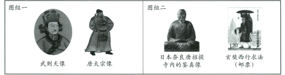 9.问题1:武则天:中国历史上唯一的女皇帝,她统治时期,打击敌对的官僚贵族;大力发展科举制,创立殿试制度,不拘一格选拔人才;继续推行减轻人民负担的政策和措施,重视发展生产;为后来“开元盛世”局面的出现奠定基础。(任意1点1分,共2分)玄奘:贞观初年,玄奘西行天竺取经,成为佛学大师,后携带大量佛经回到长安;为中国佛教的发展作出重大贡献;根据他的口述,由其弟子记录成书的《大唐西域记》,是研究中外交流史的珍贵文献。(任意1点1分,共2分)