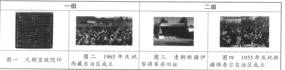 (2)从下面两组图片中任选一组,结合具体举措,说明统一多民族国家的发展是一脉相承的。(4分)