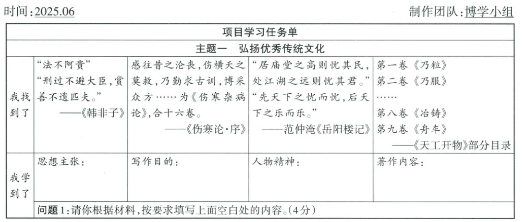7. (2025·山西·16)中国文化·民族之魂。九年级(3)班同学开展项目化学习,请你参与完成。