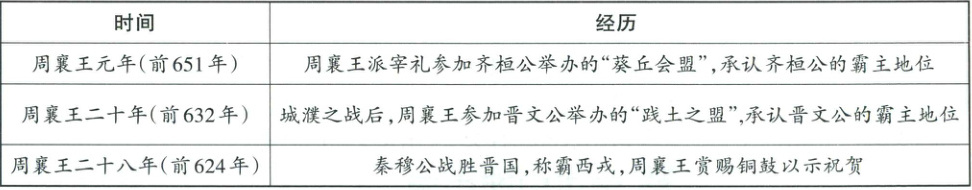 5. (2025·百校联考)下表为周襄王的部分经历,从中反映出的时代特征是 (