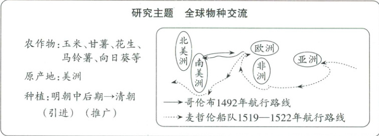 3. (2021·山西·10)九年级(1)班的同学们开展项目化学习,下面是同学们围绕研究主题展示的一张学习成果汇报卡。由此可得出,引发全球物种交流的原因是(