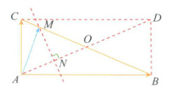$ \therefore |\overrightarrow{AN}| = |\overrightarrow{AM}| \cos \angle MAD = \frac{1}{2} $,$ M $ 为 $ AO $ 的垂直平分线与 $ BC $ 的交点,