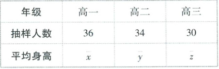 6.C【解析】由题意可知,抽取的总人数为100,各年级的频率依次为0.36,0.34,0.30,所以该校高中学生的平均身高可估计为$0.36x+0.34y+0.30z$.故选C.