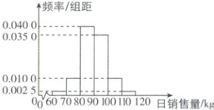 5. 教材变式某家水果店的店长为了解本店苹果的日销售情况,记录了近期连续 120 天苹果的日销售量(单位:kg),并绘制频率分布直方图如图所示.一次进货太多,水果会变得不新鲜;进货太少,又不能满足顾客的需求.店长希望每天的苹果尽量新鲜,又能 80%地满足顾客的需求(在 10 天中,大约有 8 天可以满足顾客的需求).求每天应该进的苹果质量.(精确到整数位)
