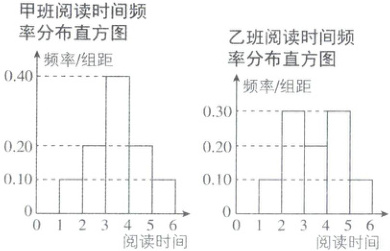 2. 某校为了解高一学生一周课外阅读情况,随机抽取甲、乙两个班的学生,收集并整理他们一周的阅读时间(单位:h),绘制了频率分布直方图. 根据直方图,得到甲、乙两班学生一周阅读时间的平均数分别为 $ \overline{x}_{1},\overline{x}_{2} $,标准差分别为 $ s_{1},s_{2} $,则 (