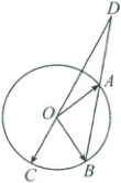 8. 如图所示,$ A,B,C $ 是圆 $ O $ 上的三点,$ CO $ 的延长线与 $ BA $ 的延长线交于圆 $ O $ 外一点 $ D $. 若 $ \overrightarrow{OC}=m\overrightarrow{OA}+n\overrightarrow{OB} $,则 $ m + n $ 的取值范围是