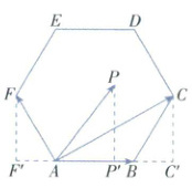 【例6】 已知 $ P $ 是边长为 $ 2 $ 的正六边形 $ ABCDEF $ 内的一点,则 $ \overrightarrow{AP} · \overrightarrow{AB} $ 的取值范围是()