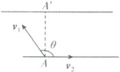 3. (多选)[江苏泰州2024高一期中调研]长江某处的南北两岸平行,江面宽度为2km,一艘船从江南岸边的A处出发到江北岸。如图,船在静水中的速度$\boldsymbol{v}_1$的大小为$|\boldsymbol{v}_1| = 10$km/h,水流方向自西向东,且速度$\boldsymbol{v}_2$的大小为$|\boldsymbol{v}_2| = 6$km/h。设$\boldsymbol{v}_1$与$\boldsymbol{v}_2$的夹角为$\theta(0\lt\theta\lt\pi)$,北岸的点$A'$在A的正北方向,则(
