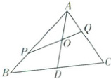 19. (本小题满分 17 分) [陕西西安铁一中 2025 高一期末]如图,在$\triangle ABC$中,$D$是$BC$的中点,$O$是$AD$的中点,过$O$点的直线与边$AB$,$AC$分别相交于点$P$,$Q$. 设$\overrightarrow{AP}=m\overrightarrow{AB}(m > 0)$,$\overrightarrow{AQ}=n\overrightarrow{AC}(n > 0)$.