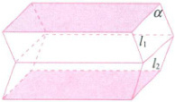 提示 不能。如图所示的几何体满足“有两个面互相平行,其余各面都是平行四边形”,但该几何体不是棱柱。因为此时仍不满足相邻两个四边形的公共边都互相平行,如平面 $\alpha$ 与相邻的两个平行四边形的公共边 $l_1$,$l_2$ 不平行。