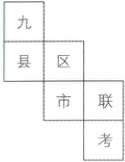 则上面是九,下面是市,左面是县,右面是联,前面是考,后面是区,故选B.