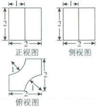 (1)根据三视图,可知该几何体是一个正方体切掉两个四分之一圆柱后的几何体。