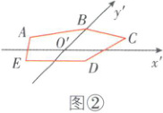 利用斜二测画法作出正五边形 $A_1B_1C_1D_1E_1$ 的直观图 $ABCDE$,如图②所示。