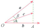 如图,$ \boldsymbol{a} · \boldsymbol{b} = |\boldsymbol{a}| |\boldsymbol{b}| \cos \beta = |\boldsymbol{b}| · OA, \boldsymbol{b} · \boldsymbol{c} = |\boldsymbol{b}| |\boldsymbol{c}| \cos \alpha = |\boldsymbol{b}| · OA $,所以有 $ \boldsymbol{a} · \boldsymbol{b} = \boldsymbol{b} · \boldsymbol{c} $,但 $ \boldsymbol{a} \neq \boldsymbol{c} $,即向量是不可以约分的。