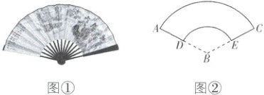 7. (多选)[山东潍坊 2025 高一期末]折扇是我国古老文化的延续,在我国已有四千年左右的历史,它常以字画的形式体现我国的传统文化(如图①),图②是一个圆台的侧面展开图(扇形的一部分),若两个圆弧 $\overset{\frown}{DE},\overset{\frown}{AC}$ 所在圆的半径分别是 3 和 6,且 $\angle ABC = 120°$,则下列关于该圆台的说法正确的是(