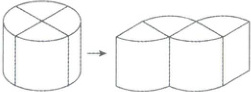8. 如图,将一个圆柱 4 等分切割,再将其重新组合成一个与圆柱等底等高的几何体,若新几何体的表面积比原圆柱的表面积增加了 10,则原圆柱的侧面积是(