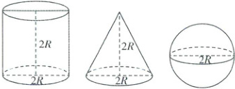 12. (多选)[四川成都外国语 2024 高一期末]如图,一个圆柱和一个圆锥的底面直径和它们的高都与一个球的直径(球的直径为 $2R$)相等,则下列结论正确的是(