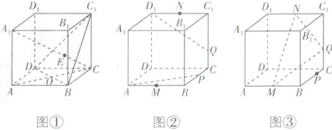 (1) 如图①,若 $ AC\cap BD = O,A_1C\cap $ 平面 $ BDC_1 = E $,求证:$ C_1,E,O $ 三点共线.