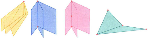 过一点、两点或者同一直线上的三点可以有无数个平面,任给不在同一条直线上的四个点,不一定有一个平面同时过这四个点,故“过不在一条直线上的三点”至关重要。“有且只有一个”的含义:“有”是说图形存在,“只有一个”说明图形唯一。