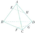 【例 1】 如图所示,已知在三棱锥 A - BCD 中,H,G 分别是棱 AD,CD 的中点,E,F 分别是棱 AB,BC 上的点,且 $ \frac{CF}{FB} = \frac{AE}{EB} = \frac{1}{3} $。求证:E,F,G,H 四点共面。