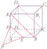 ∴ 根据基本事实 3 可得 P ∈ DA,即 CE,D₁F,DA 三线交于一点。