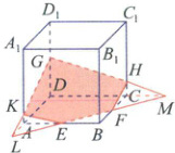 解:如图,①在底面 ABCD 内,过点 E,F 作直线 EF 分别与 DA,DC 的延长线交于点 L,M。②在侧面 A₁ADD₁ 内,连接 LG 交 AA₁ 于点 K。③在侧面 C₁CDD₁ 内,连接 GM 交 CC₁ 于点 H。④连接 KE,FH。则五边形 EFHGK 即为所求的截面。