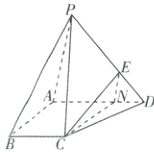 (2) 线段 $ AD $ 上是否存在点 $ N $,使得平面 $ CEN // $ 平面 $ PAB $?若存在,求出 $ \frac{AN}{AD} $ 的值;若不存在,请说明理由。