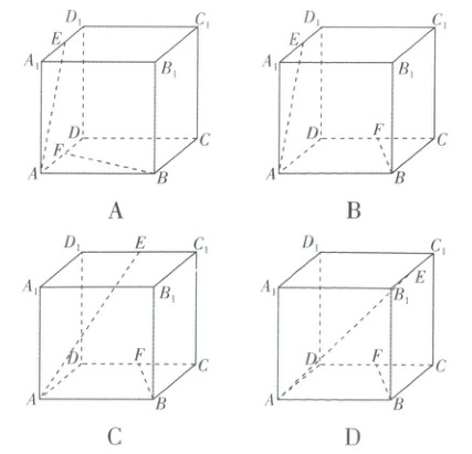 6.D【解析】在正方体$ABCD - A_{1}B_{1}C_{1}D_{1}$中,设$AA_{1} = AD = AB = 2$,$E,F$分别为所在棱的中点,