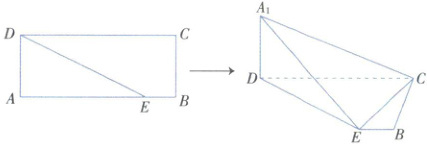 【例 1】如图,在矩形 $ABCD$ 中,$AB = 5$,$AD = 2$,点 $E$ 在线段 $AB$ 上,且 $BE = 1$,将$\triangle ADE$ 沿 $DE$ 折起到 $\triangle A_1DE$ 的位置,使得平面 $A_1DE \perp$ 平面 $BCDE$,连接 $A_1C$,$CE$.
