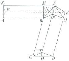 $\therefore$该多面体的体积$V=V_{ARF - BMN}+V_{CDT - BQP}+V_{S - BQEN}+V_{S - MNB}+V_{S - BPQ}=2V_{CDT - BQP}+V_{S - BQEN}+2V_{S - MNB}=2×24 + 8+2×2 = 60$。